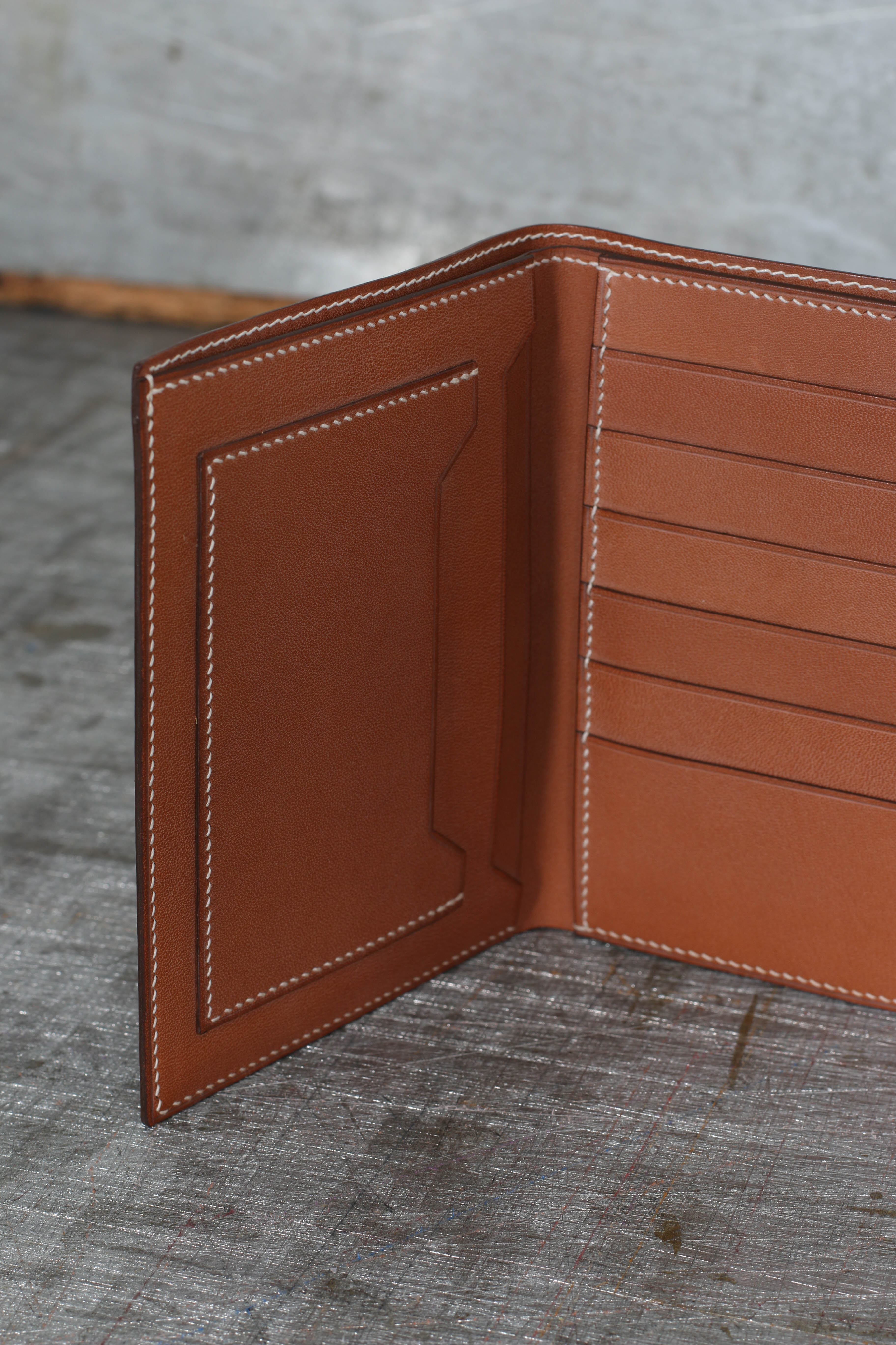 Le Portefeuille est ici proposé en baranil, qui est LE cuir emblématique de la sellerie maroquinerie. Lisse, il offre un toucher légèrement gras qui incarne parfaitement la beauté du veau pleine fleur.