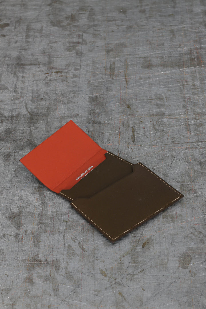 • Baranil kaki, intérieur en veau lisse brique, couture miel