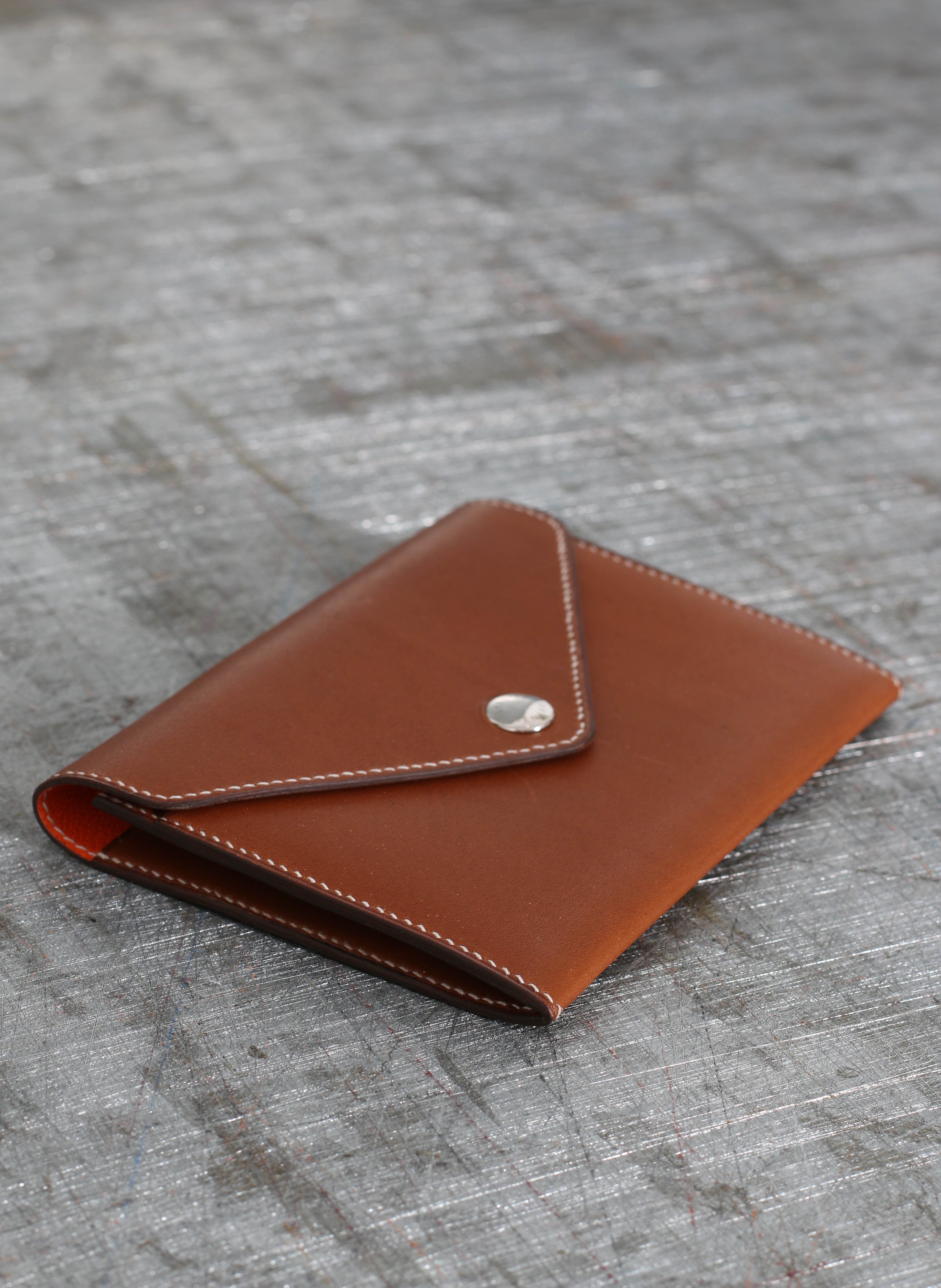 L’Enveloppe est ici proposée en baranil, qui est LE emblématique de la sellerie maroquinerie. Lisse, il offre un toucher légèrement gras qui incarne parfaitement la beauté du veau pleine fleur.