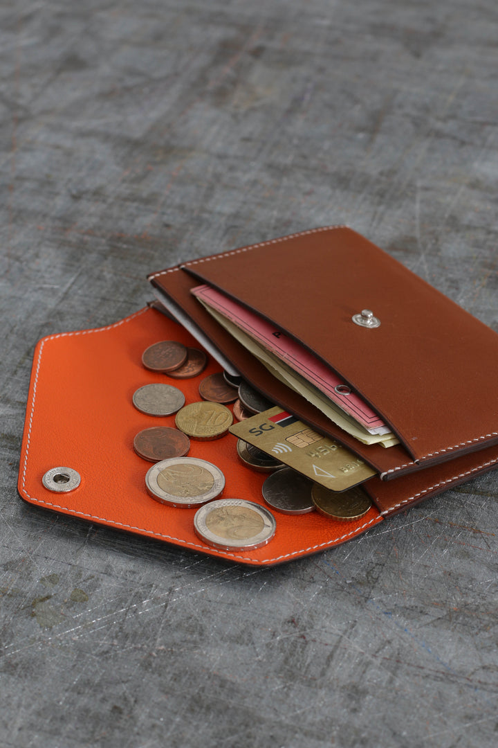 • Baranil gold, intérieur en veau lisse orange, couture écrue