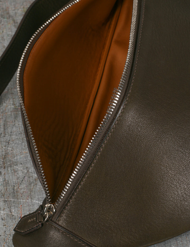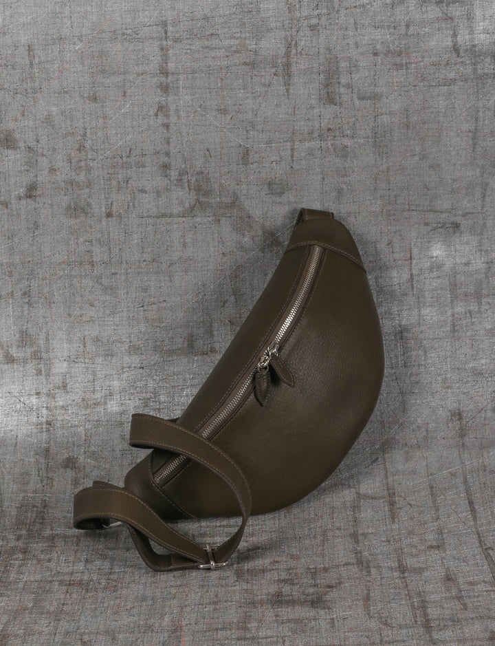 L’oblique est ici proposée en Taurillon socoa. Fini pleine fleur, c'est un cuir 100% naturel dont la principale caractéristique est son toucher cireux et doux. Il s’agit d’un cuir de tout premier choix, qui se patinera remarquablement avec le temps.